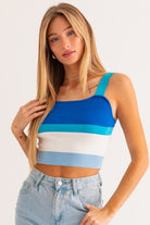 Introducing the ultimate Spring Fever must-have: the Aurora stripe knit tank! Bold blue stripes give this tank the most effortless coastal chic style. The lightweight sweater knit and skimmer length make this tank top breezy, while wide straps keep your look secure. Get ready to sail into warmer weather in style!