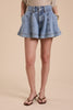 These high-waisted denim shorts feature a flattering A-line silhouette with a soft flare that adds a feminine touch. Designed with subtle pleats and a double-button closure, they offer both style and structure. Crafted from soft washed denim and finished with side pockets for added practicality, they’re perfect for pairing with your favorite summer tops for an effortlessly chic look.