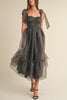 Leopard Print Tie Shoulder Organza Maxi Dress