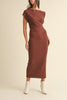 One Shoulder Ribbed Knit Midi Dress