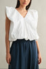 Effortlessly chic and full of volume — this ruffle sleeve poplin top brings modern femininity to your everyday look. Designed with exaggerated shoulders, a soft V-neckline, and a gathered hem that creates a sculptural silhouette. Made from crisp cotton poplin for a lightweight yet structured feel.