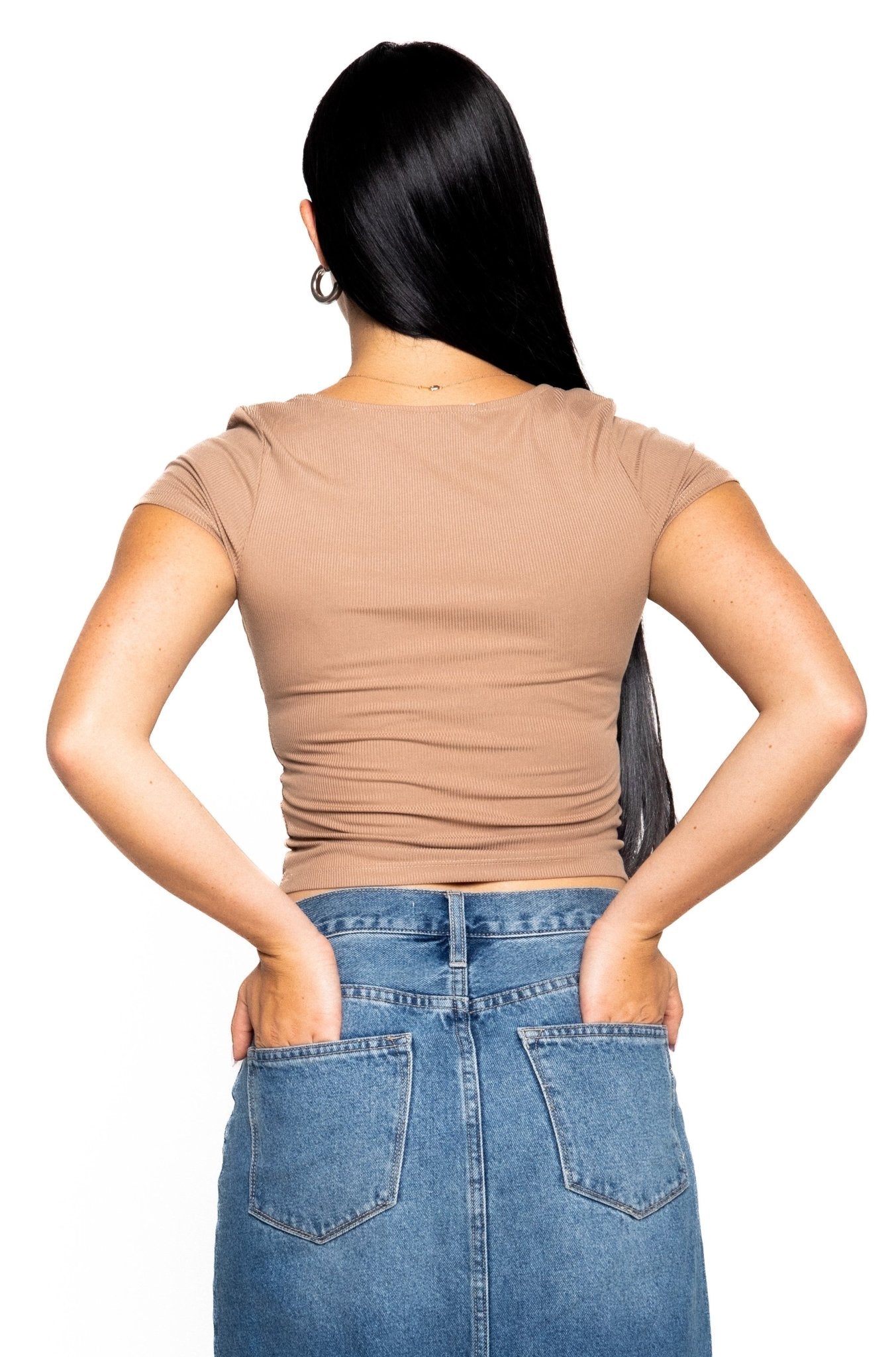 Level up your look with the Jade Rib Tee! This super soft baby tee has a functional hook and eye closure and corset detailing that are sure to impress. We promise, you'll be hooked and wanting in every color! 🤩