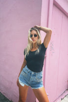 The Nash denim shorts are exactly what your wardrobe needs and they are ready for their close-up! Embellished with plenty of flair, they are a great way to add a bit of fun to your casual or Western-style look. With a fray hem and jeweled pockets, these shorts will have you feeling like the star of the show!