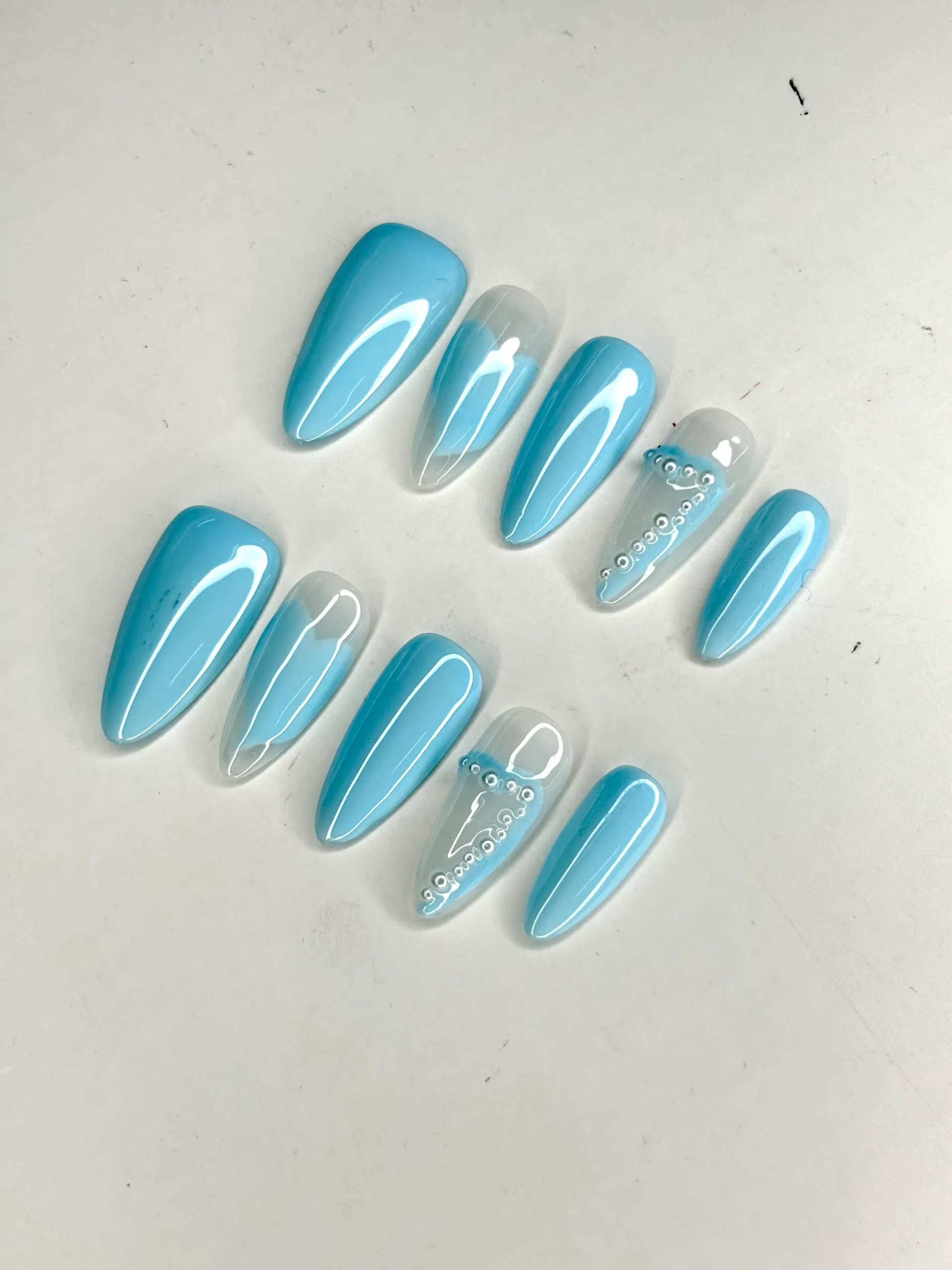 Love how simple yet elegant these press-on nails are. The baby blue tone looks gentle and calming, and the quality feels premium. I received so many compliments wearing them — great for any occasion!