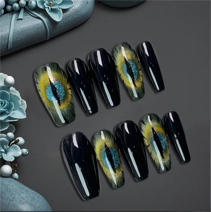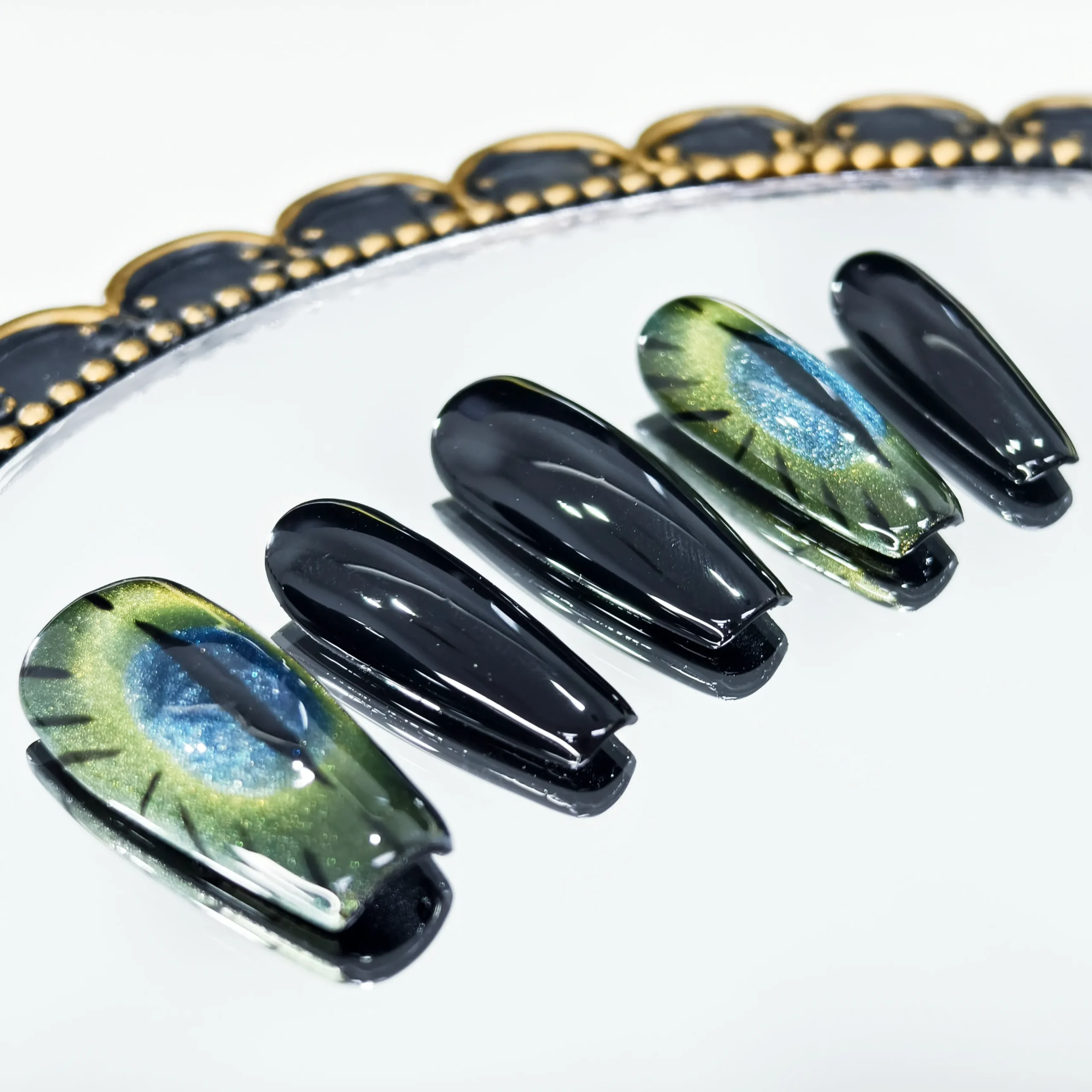 The Eye of the Demon Gradient Cat Eye Nails bring a bold and mysterious look to your fingertips. Each nail is carefully handcrafted with a stunning gradient effect and a mesmerizing cat-eye design, creating a captivating and fashionable appearance. These nails are perfect for anyone who wants to make a statement, whether at casual outings, parties, special events, or even creative photoshoots. Because they are reusable, you can enjoy multiple manicures without creating waste, making them eco-friendly and cost-effective for the modern woman who values both style and sustainability.