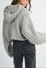 Stay warm and effortlessly stylish in this chunky cable knit cropped hoodie, a cozy must-have for the colder seasons. Featuring a classic cable knit texture with modern oversized sleeves, this sweater blends comfort and style with ease. The cropped length pairs perfectly with high-waisted jeans or skirts, giving your winter outfit a trendy, relaxed vibe.