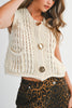 Chunky Knit Button-Up Vest with Gold Button