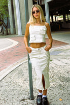 Introducing the Sadler utility cargo midi skirt! Our fem take on utility is made for all seasons, with its creamy color and contrast stitching - you dress it up or down with ease. Get the perfect matching set with the Sadler cami, or add a casual crop tee and sneakers for that effortless it-girl fit!