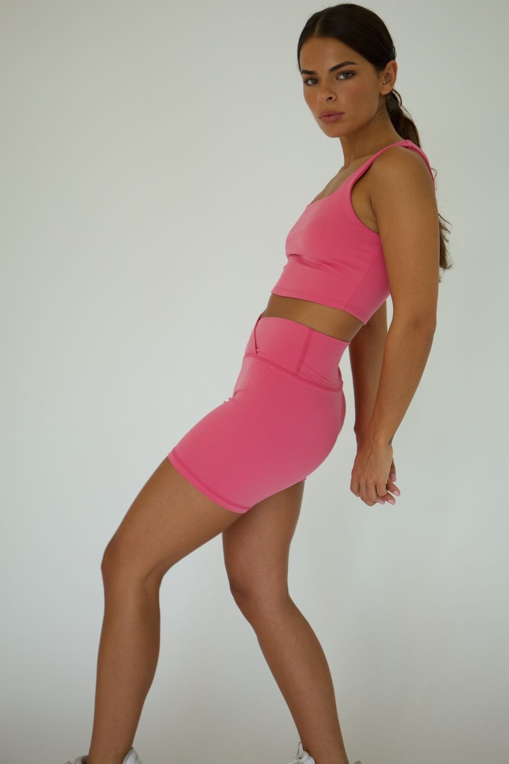 Make a statement with the VIDA NYLON SET! Style is the name of the game with this ultra soft and versatile set featuring a v waist short and square neck top - perfect for any activity from yoga to hot girl walks, running errands or your go-to class 'fit! With comfort and style, you'll be the envy of everyone you pass.