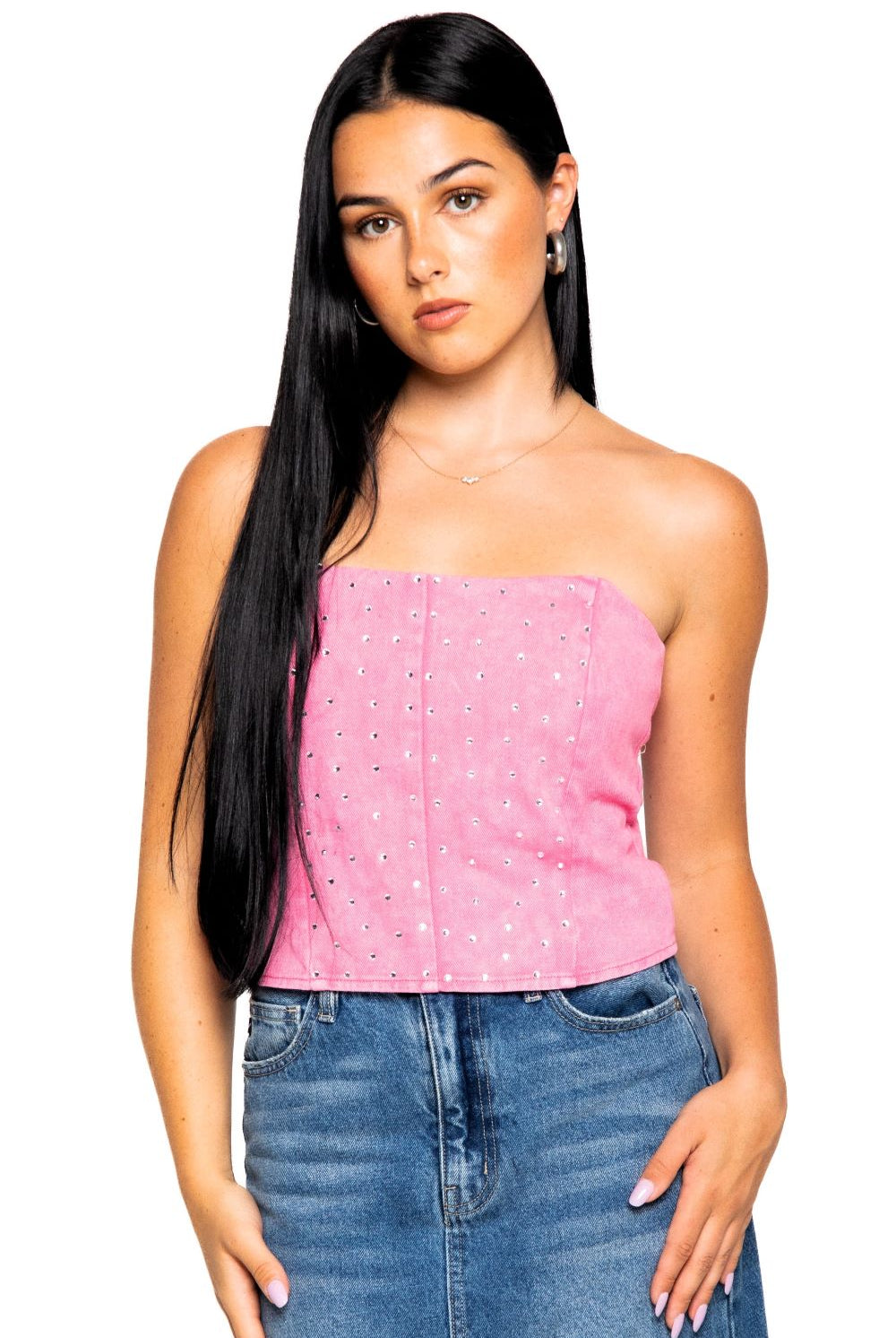 Swifty Rhinestone Denim Tube Top
