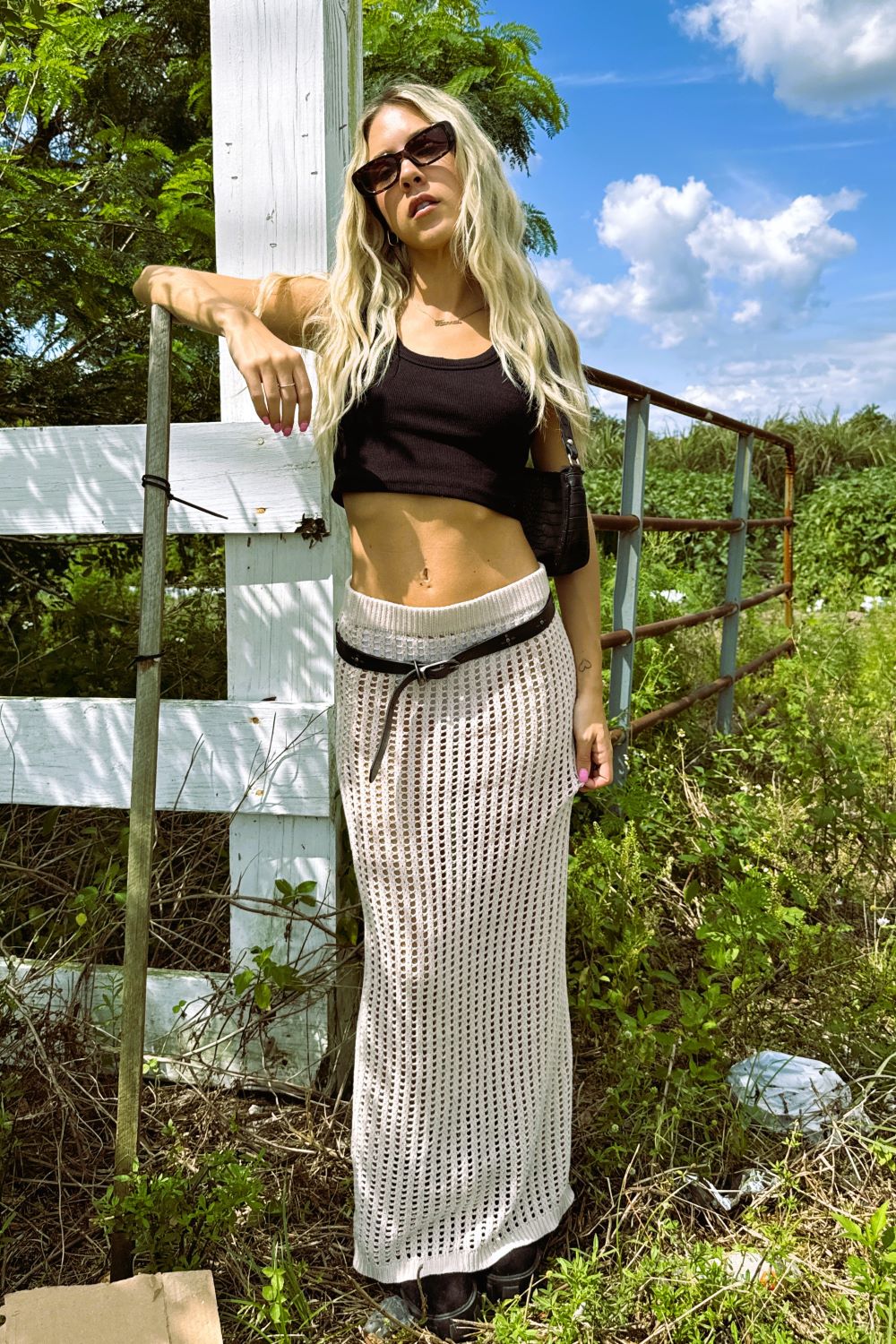 Look good from the festival to the boardwalk in the Cove maxi skirt. With its full crochet knit silhouette, this breezy skirt is the must have piece for all the warm weather vibes.
